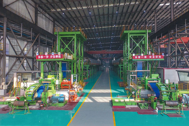 公司擁有1420酸洗冷軋聯(lián)合機(jī)組(PL-TCM)一套,機(jī)械由中國一重及中冶南方共同設(shè)計(jì)制造,電氣采用上海寶信軟件自動化控制系統(tǒng),機(jī)組設(shè)備配置合理,整體裝備達(dá)到國內(nèi)一流水平。機(jī)械設(shè)備涵蓋激光焊接設(shè)備、噴射紊流式酸洗設(shè)備、高精度雙塔式切邊設(shè)備(SMS)、五機(jī)架竄輥式UCM連軋機(jī)、新型回轉(zhuǎn)式雙卷筒卷取機(jī),軋機(jī)電氣采用秒流量控制系統(tǒng)。